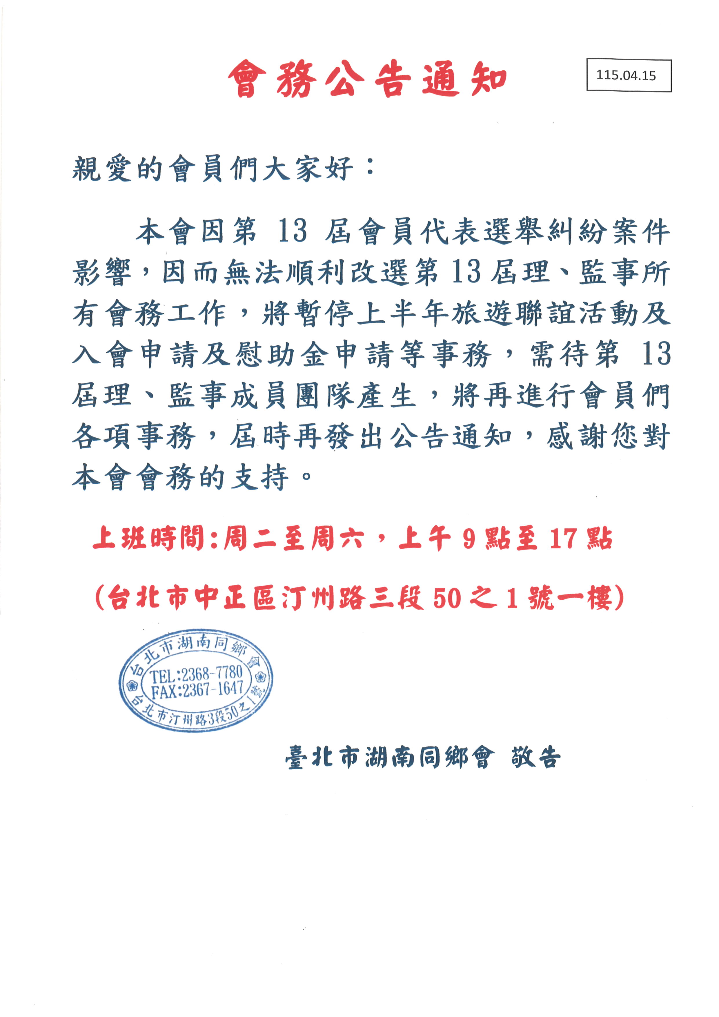 本會暫停各項活動事宜公告